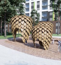 Следуя от частного к общему, от малой формы к крупной - от дерева в вашем дворе к арт объектам, выполненным в цветовых решениях хвойных пород, мы продумали эргономичные формы и минималистичную красоту квартала.