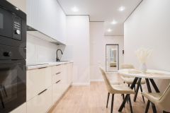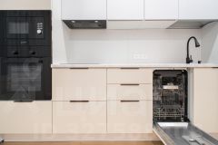 В кухонном гарнитуре установлена раковина, встроенный духовой шкаф, встроенная микроволновая печь, электрическая варочная панель, посудомоечная машина, холодильник с системой No Frost