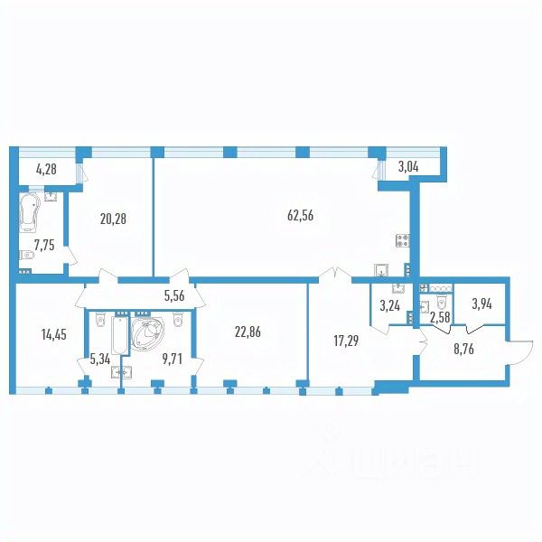 Продаётся 3-комнатная квартира в строящемся доме (Секции 15 и 16), срок сдачи: II-кв. 2026, общей площадью 187.98 кв.м., на 20 этаже.