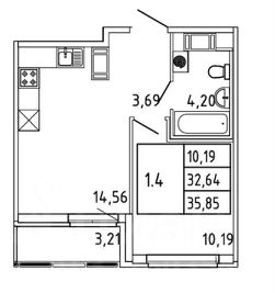 - эргономичная планировка евро-формата с просторной кухней-гостиной и изолированной спальней;