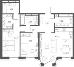 Квартира с панорамным остеклением и открытым видом на историческую перспективу Васильевского острова.