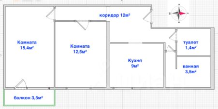 Двухкомнатная квартира 52,3 м² в КИРПИЧНОМ доме