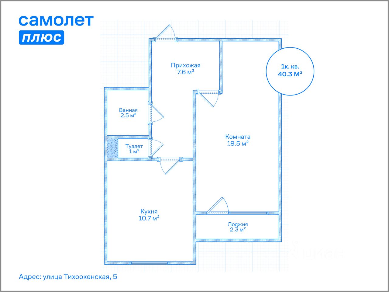 Квартира расположена на 10 этаже 11-этажного панельного дома 2014 года постройки. Общая площадь составляет 40,3 кв. м, из которых 18,5 кв. м — жилая площадь. Высота потолков 2,55 м создаёт ощущение простора и свободы.