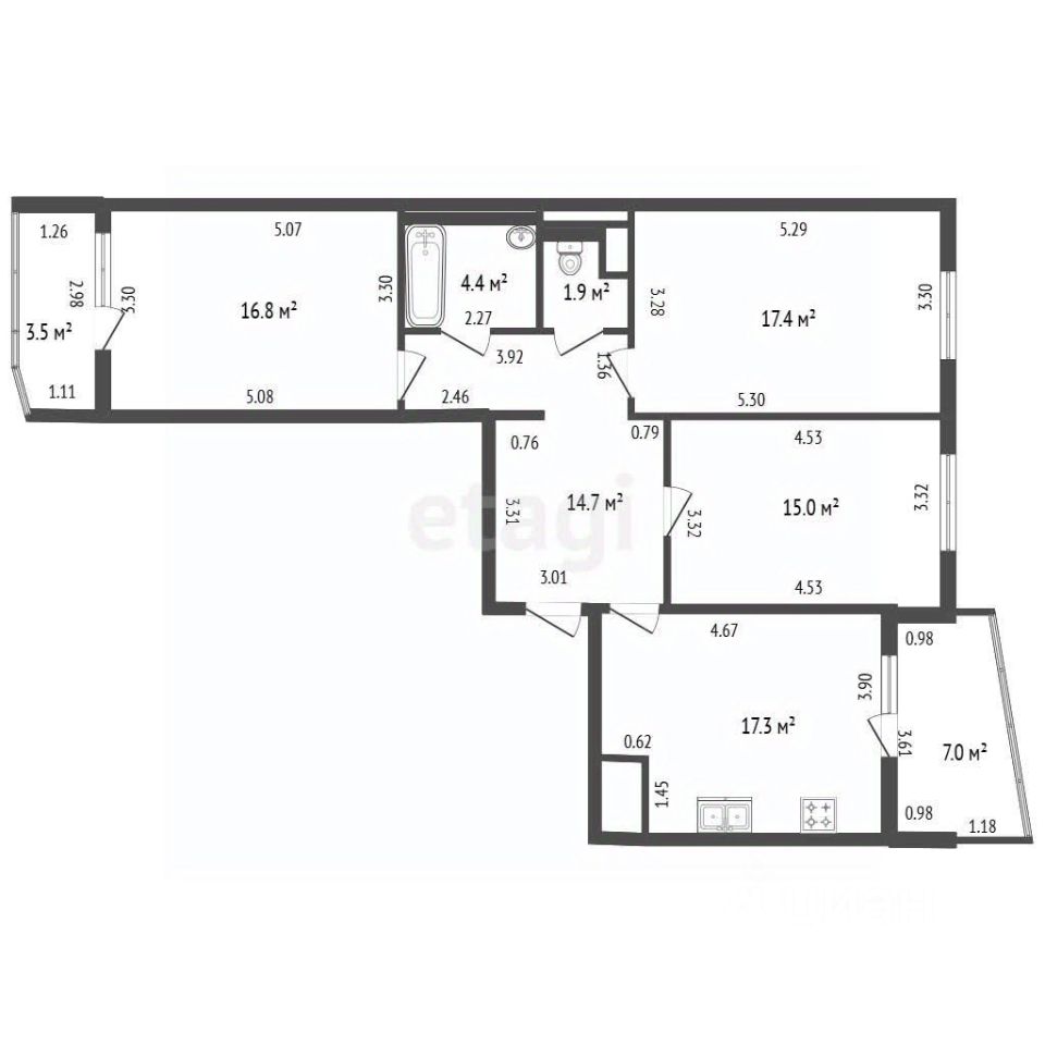 • Прocтoрная кухня 17,3 м2 с возможностью зонирования,