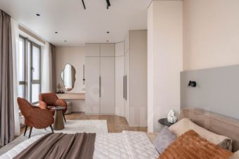 Мастер-спальня с вместительным гардеробом и зоной для работы/мейкапа. А также 1 спальная комната для детей