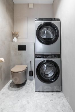 - Гостевой туалет с постирочной зоной оборудован всей техникой - стиральной и сушильной машинами