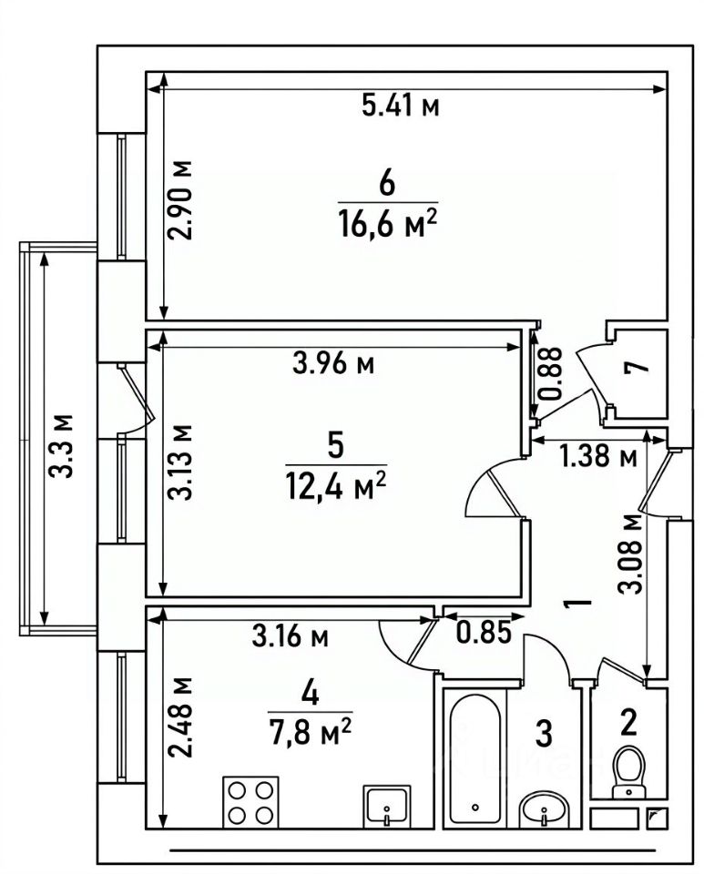 Кухня и раздельный санузел создают комфорт в повседневной жизни.