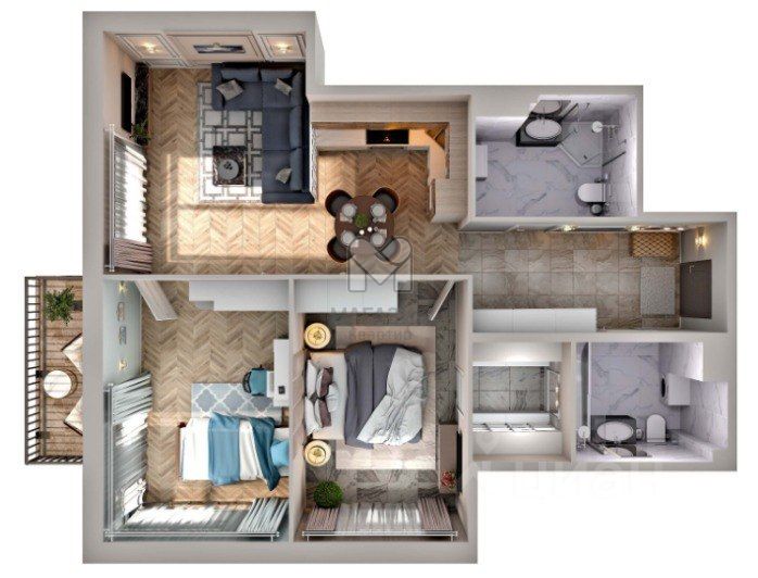 - 2 санузла, - 5 и 4.8 м2