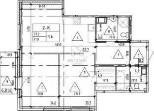 - Общая площадь - 72.5 м2 с учетом коэффициента балкона