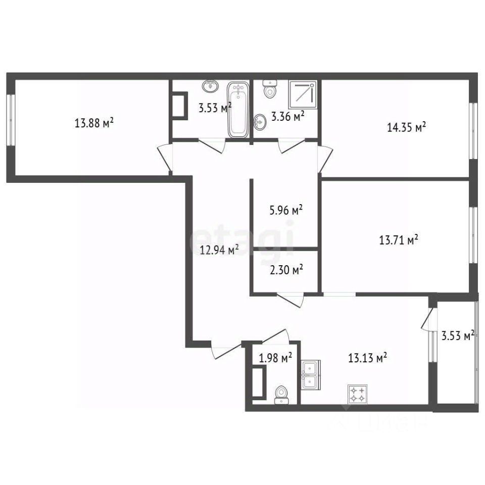 Площадь 86.9 квадратных метров распределена с умом: у вас 3 полноценные изолированные комнаты
