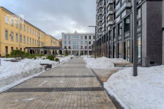 На территории жилого комплекса выполнен ландшафтный дизайн, установлены детские и спортивные площадки, а также обустроены зоны для отдыха. Двор без машин.