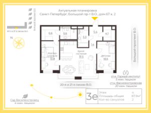 Арт. 132405958 Предлагается просторная трехкомнатная квартира в новом жилом комплексе "Большой, 67" от застройщика Legenda.
