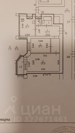Жилая площадь 28,7 м, комнаты 19,0 и 9,7 м; кухня 8,7 м, санузел раздельный.