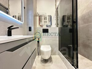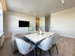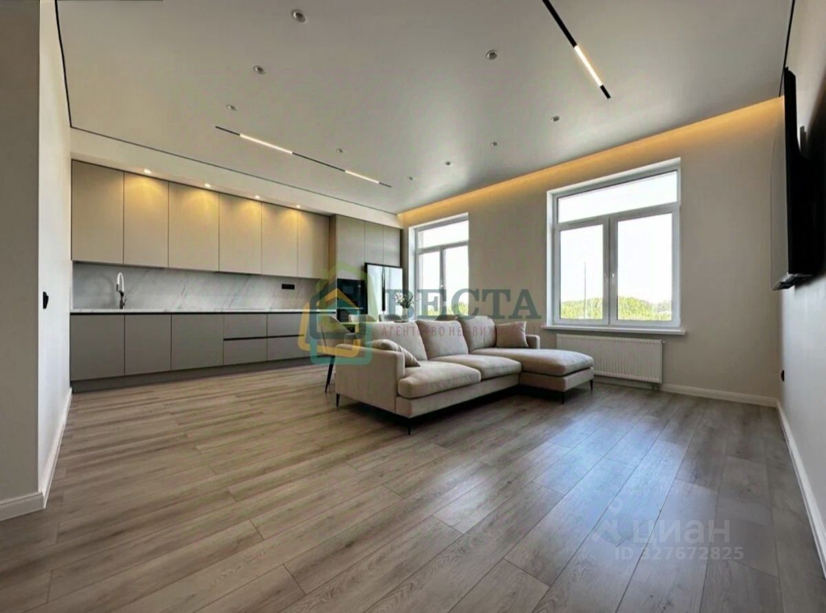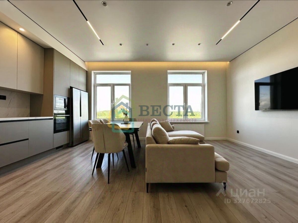 Просторная кухня-гостиная 30.52м2, раздельный сан. узел, спальня 10.06м2 и детская 10.7м2. Окна выходят на две стороны дома, установлены стеклопакеты, лоджия застеклена. Мебель и техника остаются счастливому покупателю. На полу постелен ламинат, в санузле - керамогранит, потолки натяжные.