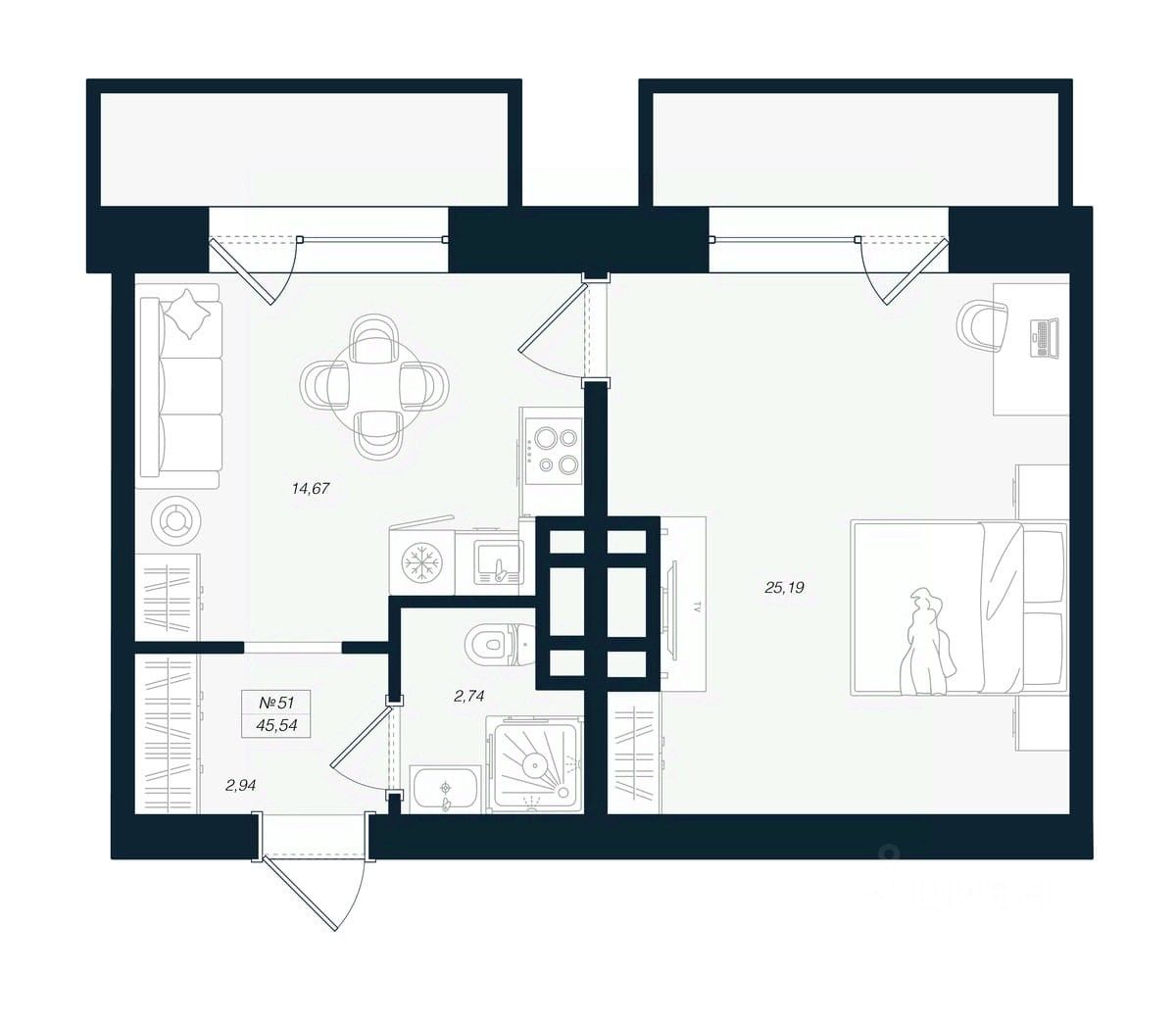 45,54 м²