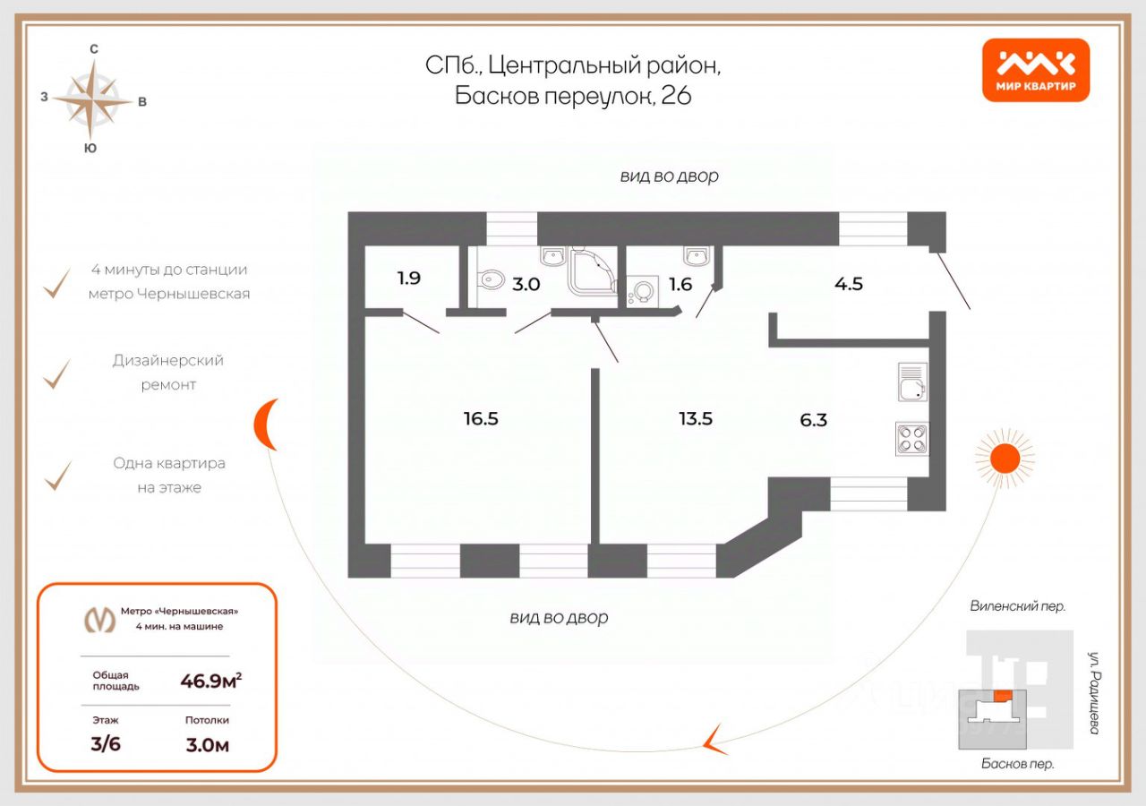 Расположение квартиры в тихом и уютном уголке исторического центра — это ваш пропуск в мир, где каждая улица рассказывает свою историю. Станции метро "Площадь Восстания" и "Чернышевская" находятся в пешей доступности. Вы сможете наслаждаться пешими прогулками до Таврического сада, посетить торгово-развлекательные комплексы "Галерея" и "Невский центр" — все это находится в непосредственной близости.