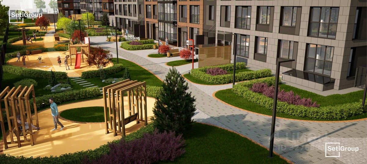 • Впечатляющий объем благоустройства: 30 000 кв. метров рекреационных зон с променадом и гейзерными фонтанами