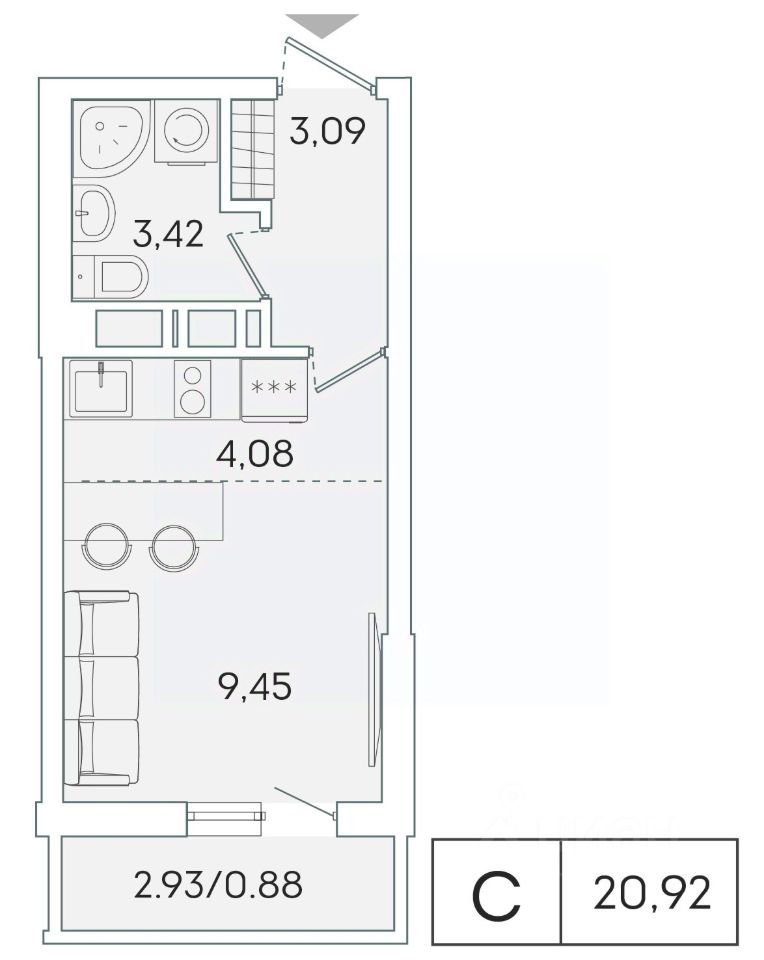 В продаже от застройщика студия 20 кв. м с черновой отделкой и практичной планировкой для удобной организации пространства. Корпус сдан, идет выдача ключей.