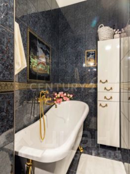 Кухонный гарнитур с встраиваемой техникой, в ванной комнате эксклюзивные смесители, как и сама ванна;