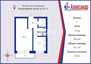 1705968 Отличная однокомнатная квартира в Красносельское районе в 10 минутах езды от метро "Юго-Западная"