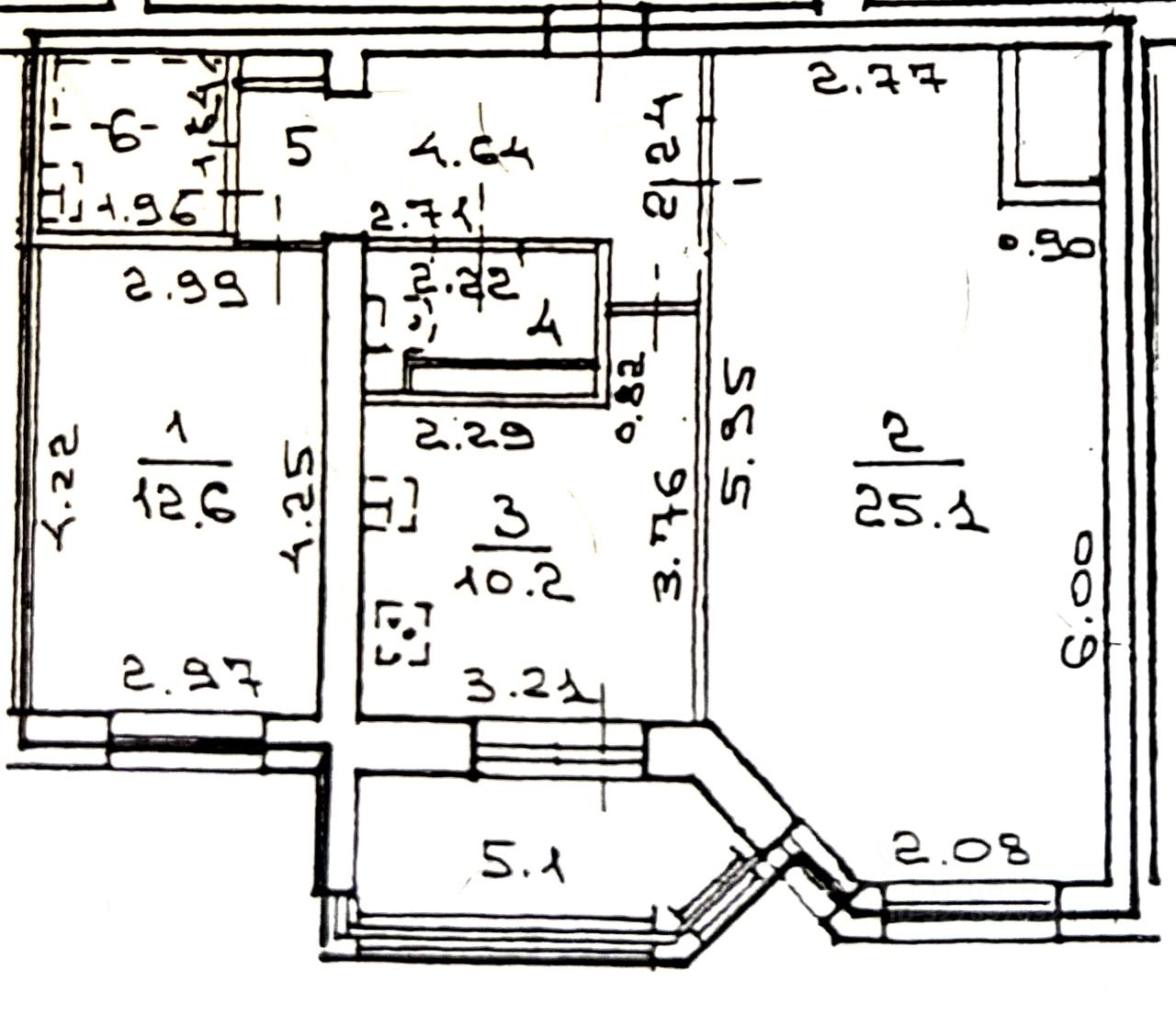 Просторная квартира общей площадью 61.1 м2, две изолированные комнаты: 25.1 м2 и 12.6 м2, функциональная кухня 10.2 м2 с лоджией 5.1 м2, два сан. узла,просторная прихожая 4.6 м2.