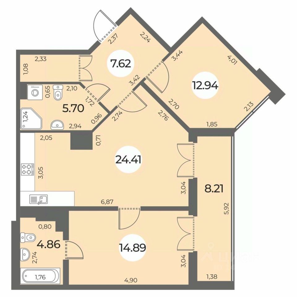 Площадь кухни24,4 м²
