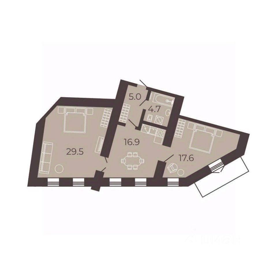 - Двухкомнатная квартира площадью 73.7 кв.м.