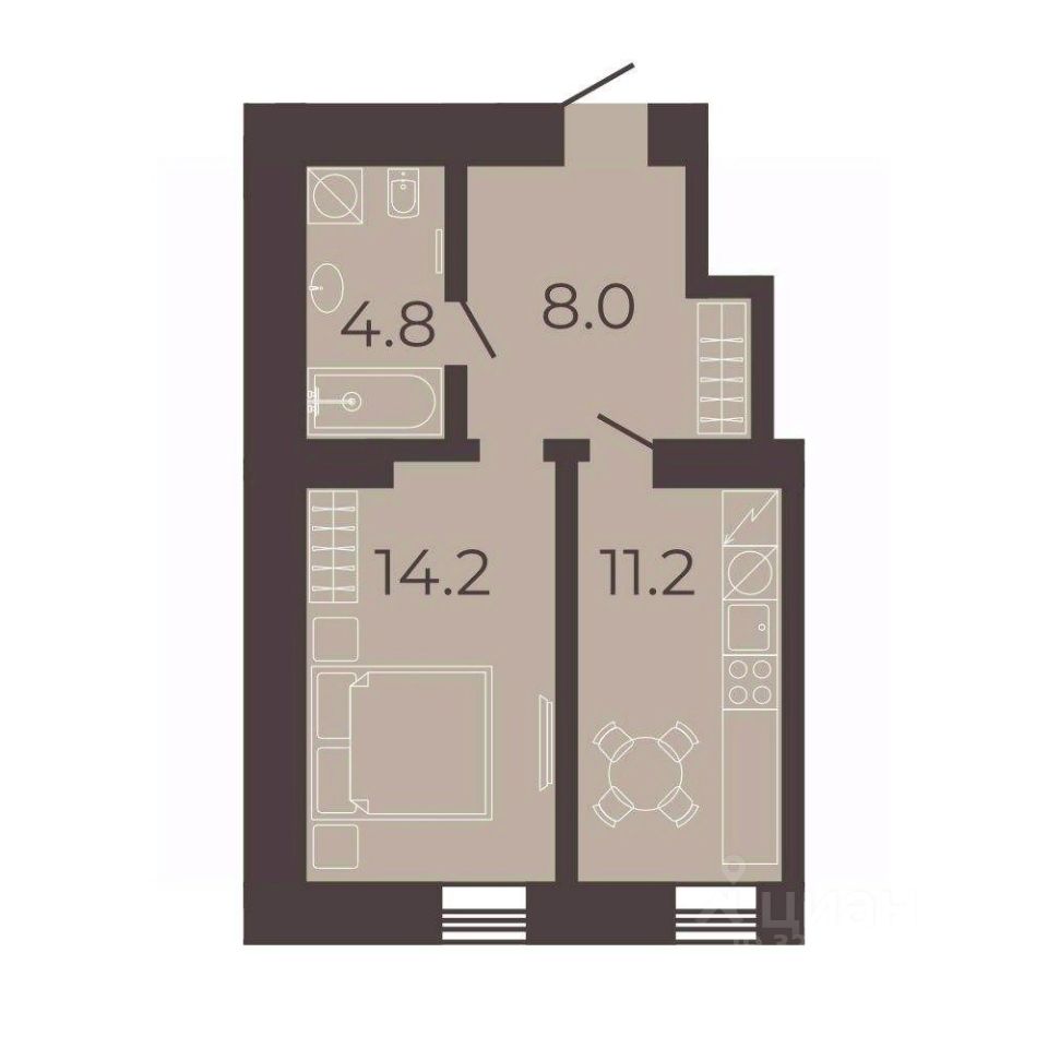 Жилая площадь: 14,2