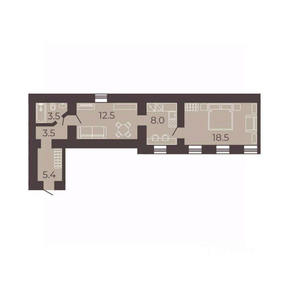 - 2-комнатная квартира площадью 51.4 кв.м.