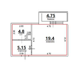 Общая площадь 29,4 кв.метра (без учета балкона). Жилая площадь 19.4 кв.м.