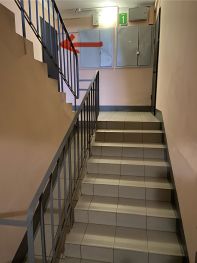 1-ый этаж, чистая лестничная площадка, лифта нет, тихо, установлена тамбурная дверь на 4 однокомнатные квартиры (см. фото)