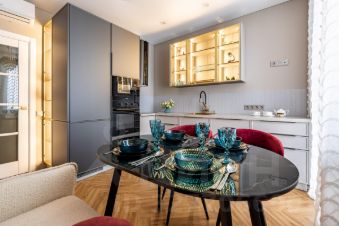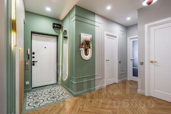Квартира имеет общую площадью 61 м.кв без учета двух балконов. Комнаты раздельные 14,5 кв.м. и 15,9 кв.м., кухня 11.5 кв.м., раздельный сан.узел, есть гардеробная и два балкона. Оба балкона имеют панорамное остекление, теплый пол, освещение, с одного из балконов красивый вид на Лахта Центр.