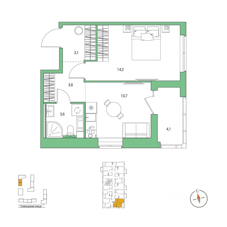 Продаётся 1-комнатная квартира в строящемся доме (Корпус 4), срок сдачи: III-кв. 2028, общей площадью 37.5 кв.м., на 8 этаже. Новый жилой комплекс "Янила Форест" от застройщика "Ленстройтрест" расположен по адресу: Россия, Ленинградская область, Всеволожский район, Заневское городское поселение, городской посёлок Янино-1, Голландская улица
