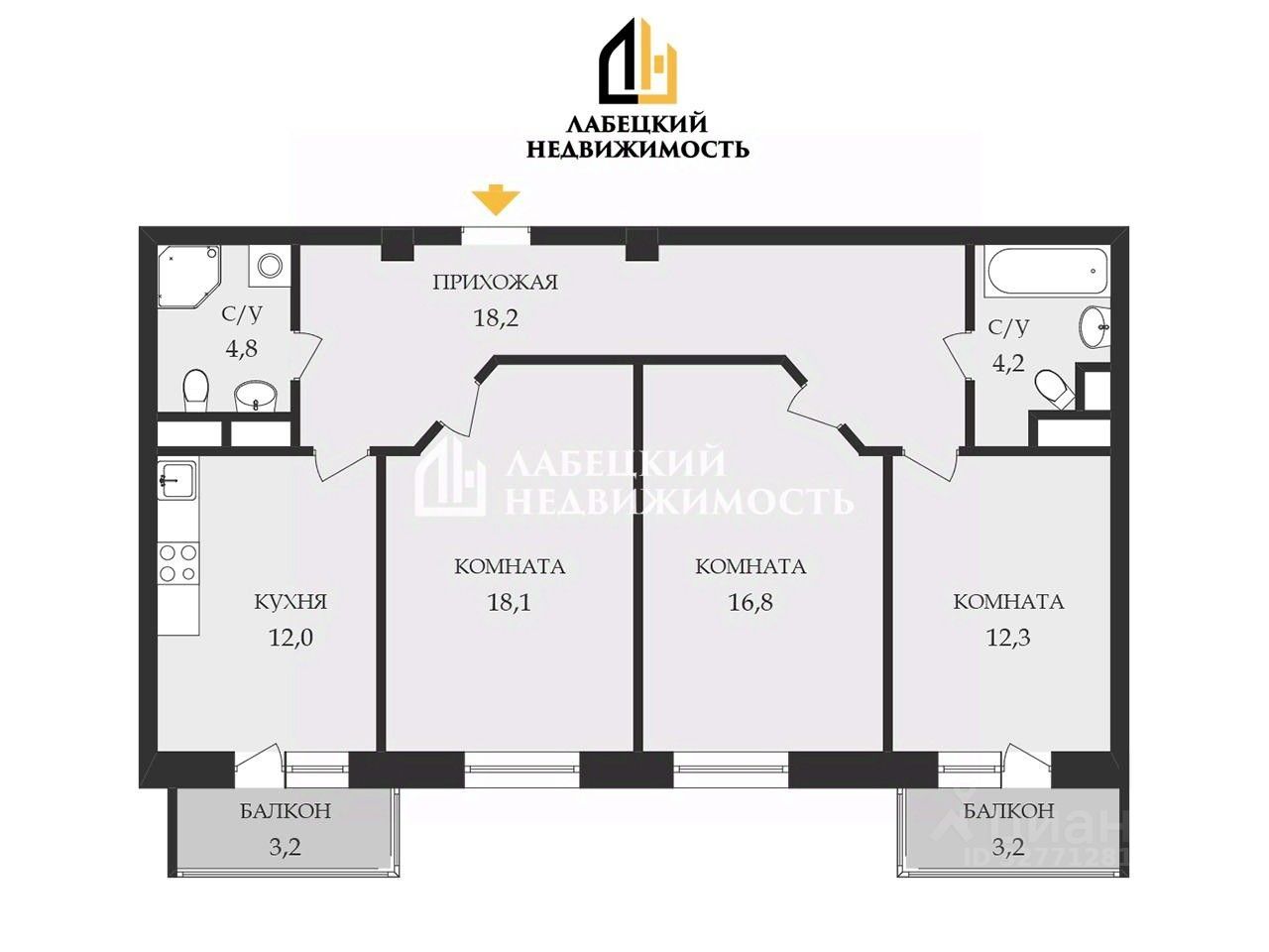 -ПЛОЩАДЬ квартиры указана БЕЗ УЧЕТА двух лоджий по 3.2 м2