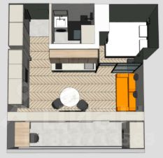 В этой студии помещается все, что нужно для комфортной жизни, для демонстрации данного утверждения мы сделали дизайн-проект по точным размерам квартиры с 3D VR-туром, при просмотре которого Вы сможете оценить все достоинства планировки и почувствовать себя дома!