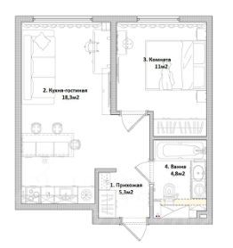 - комфортная кухня-гостиная 18,3 м.кв.;