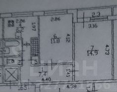 Квартира расположена на 6 этаже. Общая площадь составляет 43.7 кв.м. комнаты раздельные 11.6 и 14.9 кв.м. Кухня-6.2 кв.м., С/у раздельный.