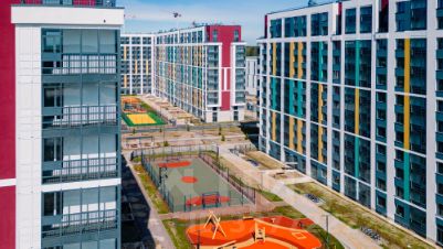 Уже построены два корпуса проекта, каждый двор автономен, сюда родители без боязни выпускают детей на прогулку. Этот проект идеален для старта молодой семьи.