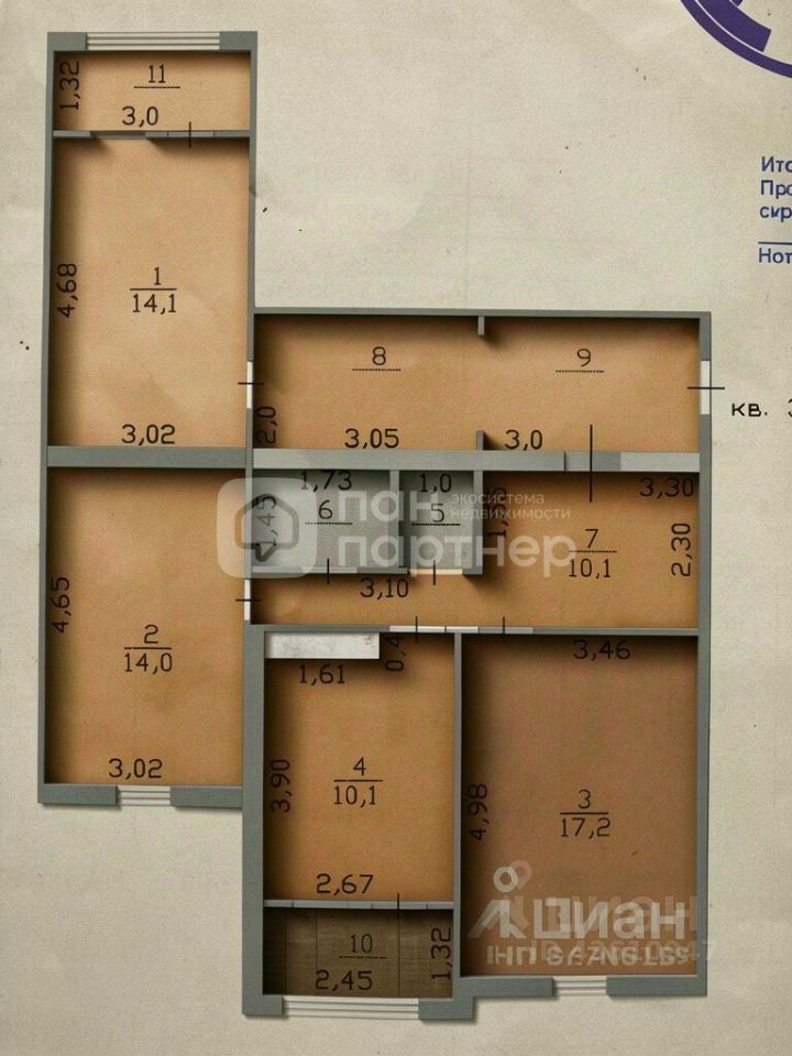 3 комнаты;