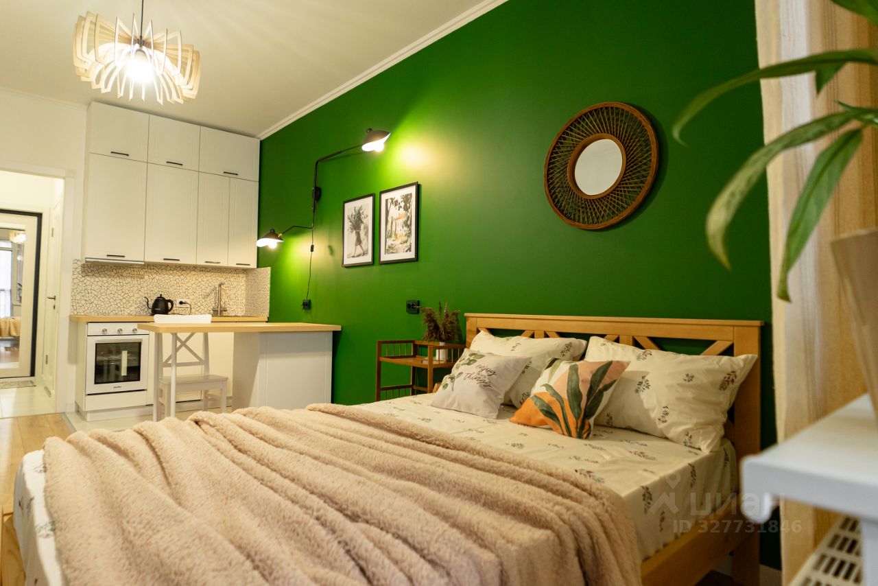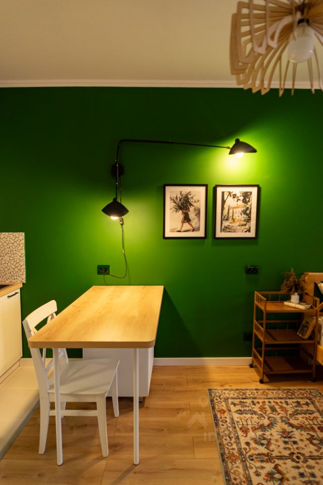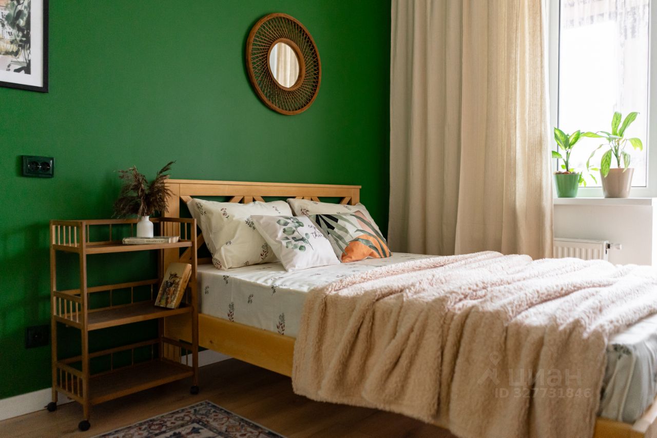 Цвет стены глубокий хвойный, на фото чуть искажение.