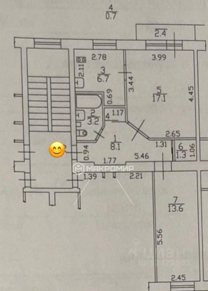 Арт. 118966409 Уютная и просторная 2-х комнатная квартира, с косметическим ремонтом .
