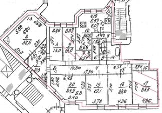 Первый этаж, на котором расположена комната - гораздо выше стандартных, поскольку дом имеет ещё полноценный цокольный этаж со множеством полезных и востребованных организаций.