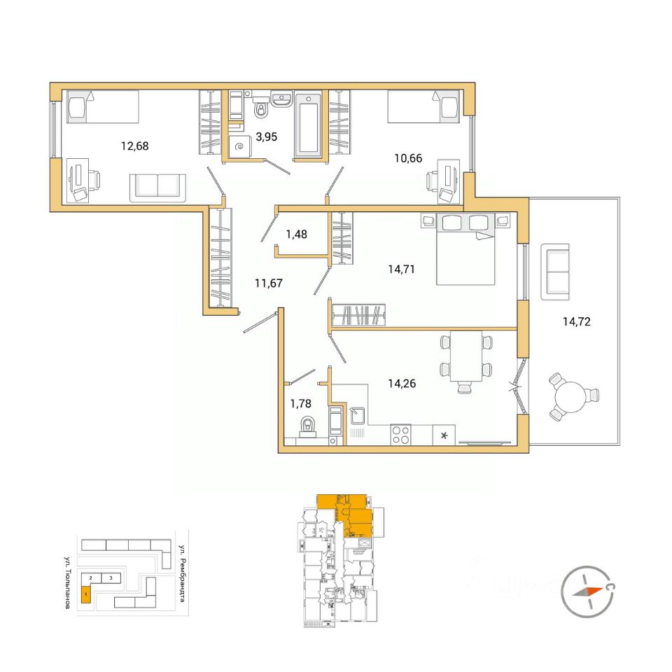 14,3 м²