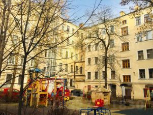 Окна выходят на солнечную сторону, в тихий и закрытый двор.