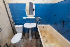 Выполнен легкий косметический ремонт (переклеены обои, пол ламинат, натяжной потолок). Санузел совмещенный, требует косметического ремонта, что позволит обыграть его по вашему вкусу.