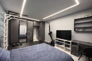 Комфортный 2 этаж, высота потолков 3 метра. Продуманная планировка: большая гостиная 20,3 м2 + зона для приготовления пищи 7.4 м2 и две изолированные комнаты. 8 окон — квартира наполнена светом. Окна выходят во двор и на тихую улицу. Балкон — один из двух на весь дом, только у этой квартиры и у соседней.