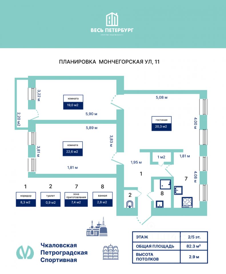 Просторная трёхкомнатная квартира площадью 82,3 м² в историческом доходном доме 1904 года постройки — архитектор Голосуев А. К., стиль петербургского модерна. Один из немногих подлинных доходников Петроградской стороны, где сохранена атмосфера начала XX века и при этом полностью обновлены инженерные системы.