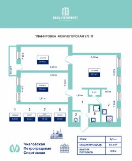 Один из самых зелёных и престижных районов Санкт-Петербурга — тихие улицы и атмосфера интеллигентного Петербурга. Вся инфраструктура в шаговой доступности. 4 станции метро от 5 до 15 минут пешком, два съезда на ЗСД. Школы, детские сады, поликлиника, супермаркеты — всё рядом. Парковка во дворе.