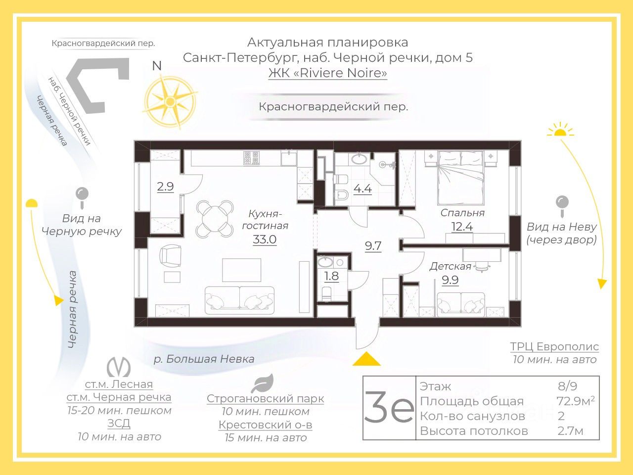 Вид из окон открывает потрясающие панорамы реки Нева и живописную набережную Черной речки.
