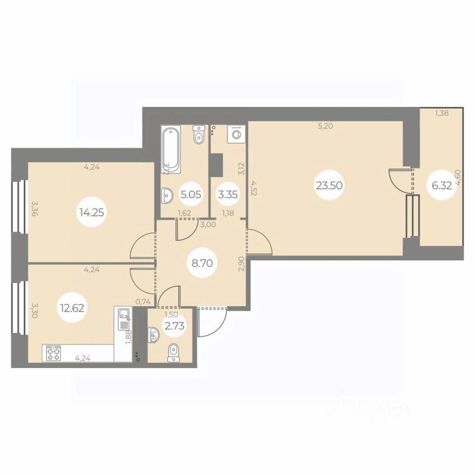 Общая площадь73,36 м²